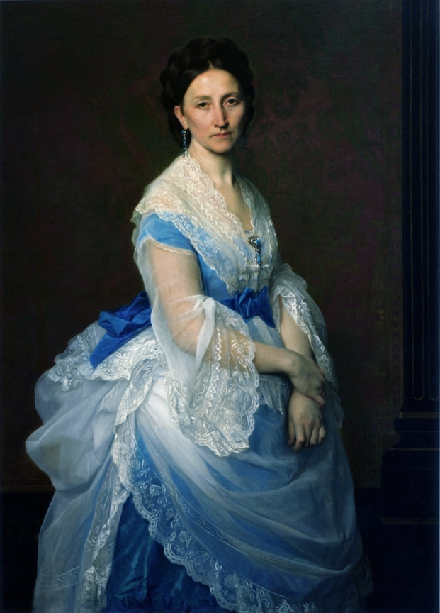 It is difficult to comprehend the amount of finished work that Cabanel was able to produce. In 1871, for example, he painted eleven portraits and six other works in addition to Giacomina. This includes the fine portrait of the wife of German Baron Paul von Derwies. Reminiscent of the portraits of Franz-Xavier Winterhalter, this work is a good example of Cabanel’s ability to achieve fine characterization allied with a noble grandeur without haughtiness. Everything about the portrait is superb. The pilaster in the background is similar to the one in the background of his portrait of the Countess Elizabeth Vorontsova-Dashkova.