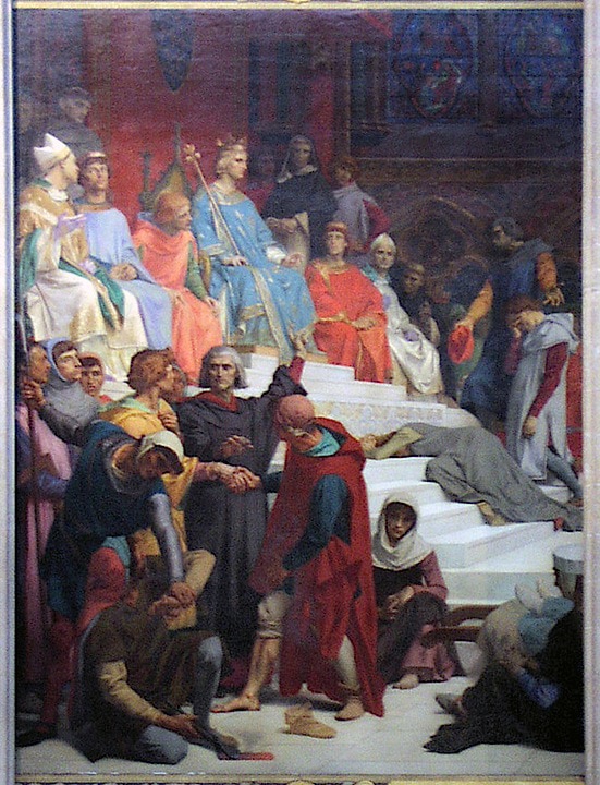 Upon the death of his father in 1226, twelve-year-old Louis became king with his mother as regent. Blanche saw to it that he was crowned at Reims, even though many powerful nobles did not attend, and she successfully kept the nobles from rebelling. Continuing her late husband’s efforts, she put an end to the Albigensian revolt. With Blanche’s guidance, Louis successfully imposed a treaty on Raymond, the count of Toulouse, to settle a dispute over the Languedoc, and strengthened royal authority by temporarily shutting down the University of Paris to stop a student revolt. At age 15, Louis personally led troops to meet the invading Henry III, but the English king withdrew and truces were renewed. Louis also took an interest in art, architecture, and literature, sponsoring the construction of buildings and literary endeavors. He encouraged his chaplain, Vincent of Beauvais, to write an encyclopedia (the Speculum Magus). His court was lively with pleasant conversation encouraged by the vivacious monarch. Louis endeavored to correct the abuses made by officials in his absence. He appointed investigators and passed two famous ordinances that outlined the responsibilities and duties of royal officials. He also outlawed prostitution, ordeal by battle, and judicial duels, and he imposed penalties on counterfeiting. His measures strengthened royal authority and justice and stabilized the currency, assisting in increased commerce and trade. While Louis was king, the University of Paris was an unparalleled magnet for students from throughout Europe.