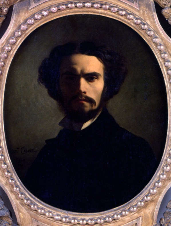 Alexandre Cabanel entered the world on September 28, 1823, in the town of Montpellier in southern France, just off the coast of the Mediterranean Sea. During the Reformation the town had been a stronghold of Protestant resistance to the Catholic French crown. Louis XIV made it the capitol of Bas Languedoc. After the French Revolution the town became the capitol of the smaller Hérault. The son of a carpenter, Cabanel began studying art at the local school of fine arts at age eleven. His instructors, impressed by the young man’s skill in drawing, offered him a teaching position, which he refused. Cabanel’s father could not afford further training, but in 1839 the talented sixteen-year-old won first prize in a local competition and received a municipal scholarship that enabled him to study in Paris. There, he trained for six years in the atelier of François-Edouard Picot.