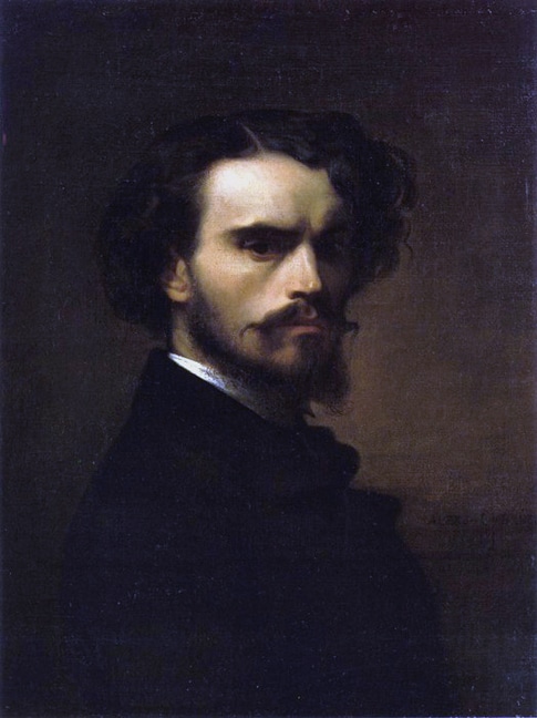 In 1852, Cabanel also painted a self-portrait for Bruyas. It is a simple and austere bust-length likeness of him at age twenty-nine. His intense gaze and resolute expression convey a sense of solemn purpose, befitting a serious artist at the beginning of his career. The somber, lower keyed palette of blacks and browns, alleviated only by the light of the face and a spot of white on the collar, add to the effect. By gift (1868) and by his will (1878) he donated one hundred and forty-eight paintings to the Musée Fabre in Montpellier. His collection included a large number of works by Cabanel, as well as works by artists as diverse as Barye, Bonvin, Courbet, David, Delacroix, Diaz, Géricault, Ingres, Millet, and Tassaert.