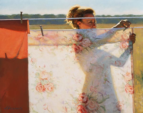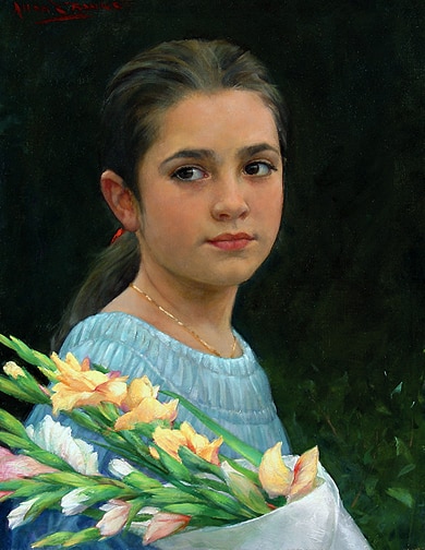 Classical Realism is a more inclusive term than Classicism, Realism, and Impressionism. It encompasses these traditions and may be used to describe works that are quite diverse. Works categorized as Classical Realist may exhibit characteristics of Classicism and Realism, both part of the European Academic tradition, and ─ though not implied by the name ─ impressionism, as exemplified by the artists of the Boston School. Paintings by classical realists will exhibit a high degree of truth to the color of nature. The work of Classical Realists is not limited to so-called classical or realist themes and includes most of the genres common to Western art: still life, portrait, landscape and seascape, indoor and outdoor figure painting, and imaginative painting. Classical Realism is a living tradition. It is not a pastiche of styles and methods pieced together from the past. Classical realists can usually trace their artistic lineage from pupil to teacher back to 19th Century France, Germany, England, or Italy. Although its roots are in the past, its practitioners are living in the present and creating work that has meaning for them today. It is connected, not reactionary. The principles upon which their art is based transcend the transience of popular trends and link their work as a whole to the timeless qualities inherent in the best work of the past.