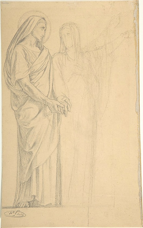 Saints Adrian and Natalia. Graphite on beige paper, 11⅝ x 7⅛. Metropolitan Museum of Art. Gift of Bruno and Thérèse de Bayser, in memory of Lawrence Turcic, 1988.