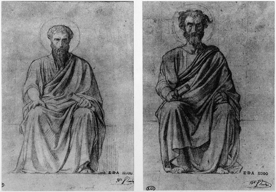 Left: Saint Basile. Pencil, 8 x 5⅜. Right: Saint John Chrysostom. Pencil, 7⅜ x 5. Studies for the Church of Saint Paul, Nîmes. École National Supérieure des Beaux-Arts, Paris.