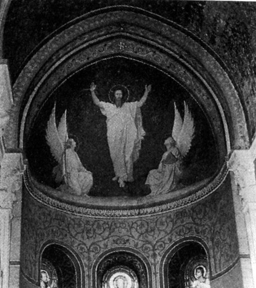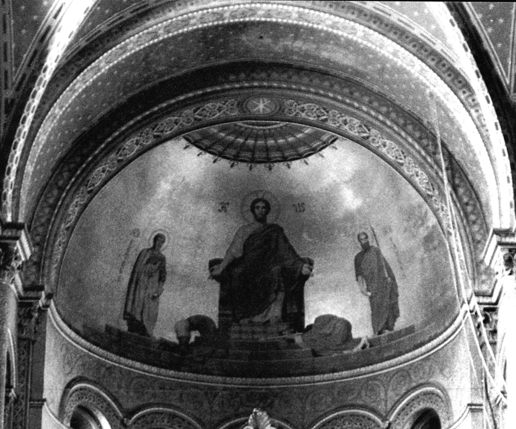 In 1848, just as Picot was about to begin, the Revolution disturbed everything and, when a new town administration came into office, Armand Marrast, the Mayor, withdrew the commission from Picot and offered it to Flandrin. Disgusted at what he considered unfair treatment of a fellow artist and Prix-de-Rome winner (1813), Flandrin declined the task a second time. It was only after Picot’s urging that he would listen to any propositions on the subject, and even then he insisted on Picot taking part in the project as well as himself. Until the matter was decided, Flandrin continued to work at Saint Germain-de-Prés. After due consideration, the commission went to both Flandrin and Picot: Flandrin was to paint the nave and Picot the choir. Flandrin’s brother, Paul, Louis Lamothe and three other students assisted him in the four-year project.