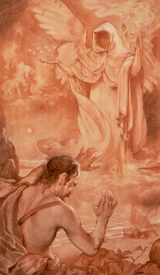 Revelation to Saint John, 1967. Sanguine, 24 x 14. Private collection.
