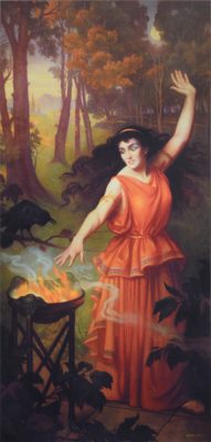 Lack studied the paintings of Rubens and the Flemish masters as well as those of Veronese and the Venetians. As a result, he gained the practical knowledge to paint in both the bistre and Venetian methods. Most of his imaginative paintings are executed in these methods, with the additional quality of observed color. The subjects of his early imaginative works were traditional, primarily taken from history and literature. His goal was to paint pictures guided by his imagination, with myth as a subject, imbued with personal psychological meaning. In his opinion, the Swiss psychiatrist Carl Jung was the key figure in twentieth-century psychology. Gammell had discovered Jung in the 1930s, and the new and arresting imagery in his works inspired Lack to study Jung in more depth. Lack’s studies of Jung “became a key that unlocked new possibilities of subject matter and images that could be used in my art. . . . I am trying to find a personal imagery that expresses the archetypes in twentieth-century man.”[14]